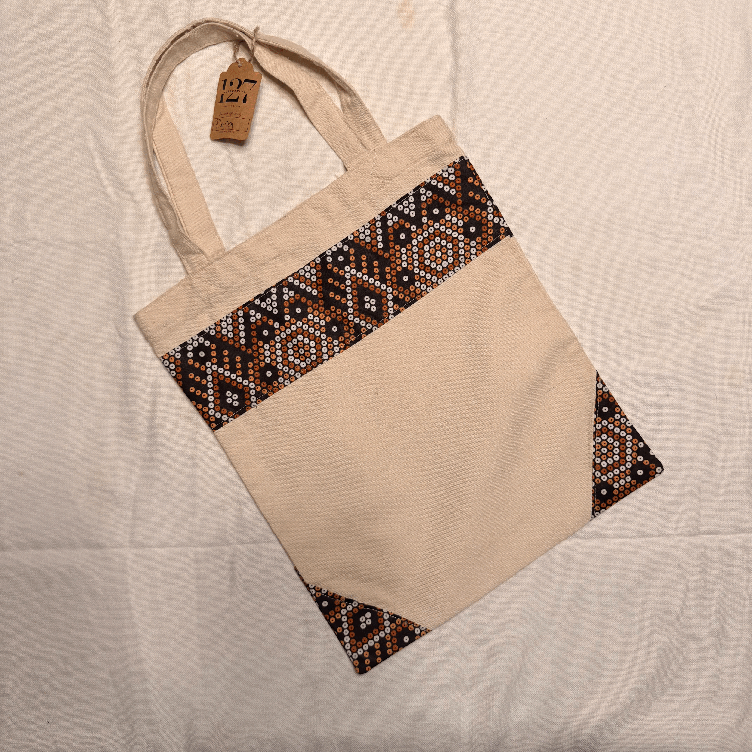 Fully reversible: solid canvas or other solid material on one side, chitenge fabric on the other