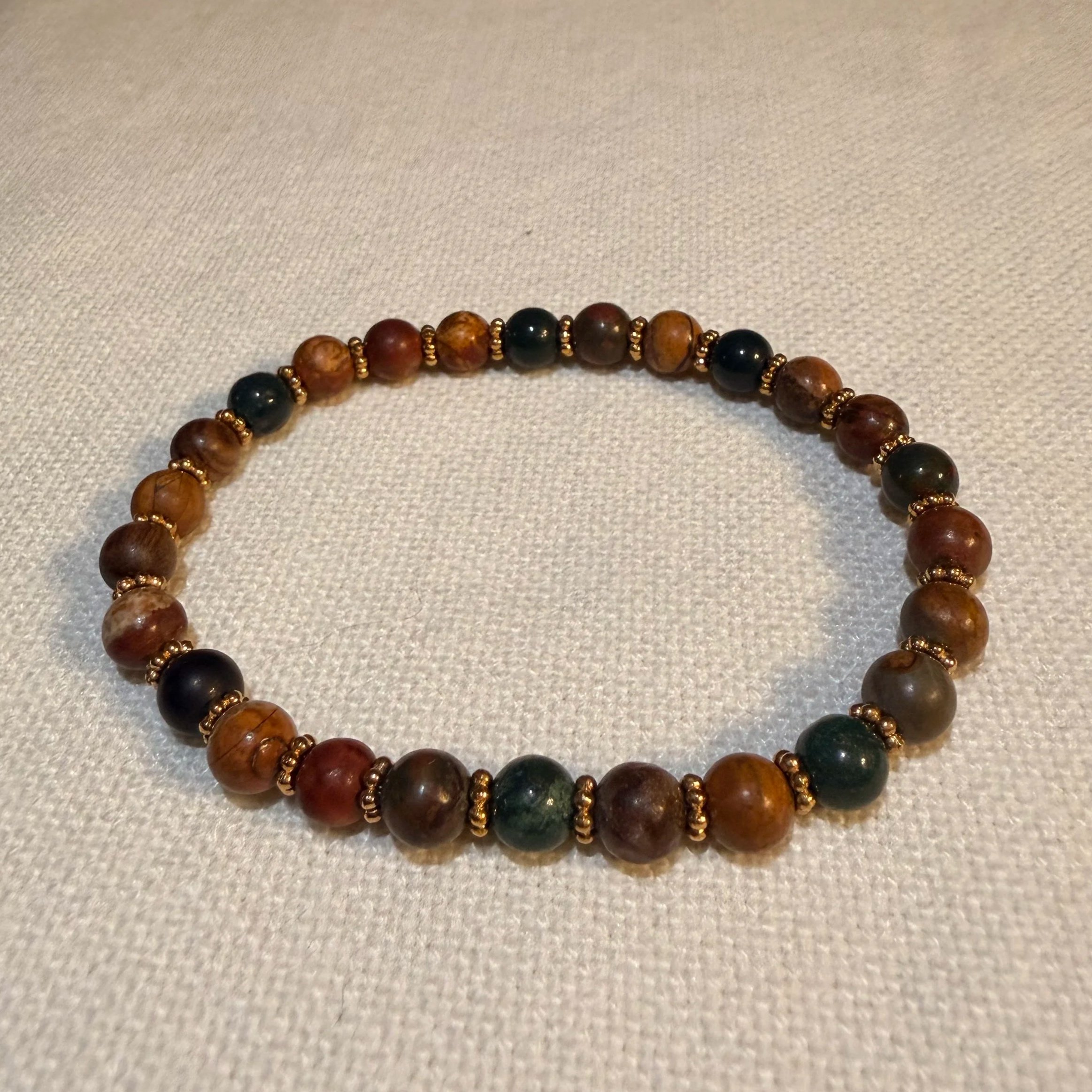 Soft tones of amazonite paired with petite gold rounds create a clean, refreshing everyday bracelet. Lightweight and easy to wear, it carries the story of hope behind the hands that crafted it.